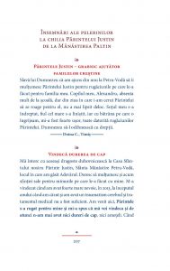 Cartea cuprinde mărturii și relatări ale maicilor din mănăstirea Paltin, ale unor foști frați de detenție, precum și ale altor ucenici ai Părintelui Justin