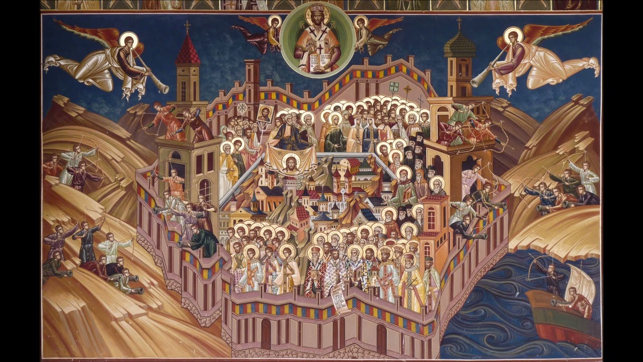 Cuvântul dumnezeiesc pe pământul românesc au odrăslit iar Biserica străbună cu Sfinţi s-a împodobit, vrednici lucrători s-au arătat Mucenicii şi Mărturisitorii care pentru Hristos viaţa şi-au jertfit iar Cuvioşii şi Pustnicii întru nevoinţe urmând calea Domnului chipuri îngereşti au dobândit, Arhiereii şi Preoţii neîncetat vestind Cuvântul Evangheliei au mărturisit, iar binecredincioşii Voievozi Biserici au înălţat şi cu dreptslăvitorii creştini cu râvnă şi jertfelnicie credinţa ortodoxă şi ţara au apărat, toate cetele Sfinţilor împreună rugaţi pe milostivul Dumnezeu sa mântuiască sufletele noastre.