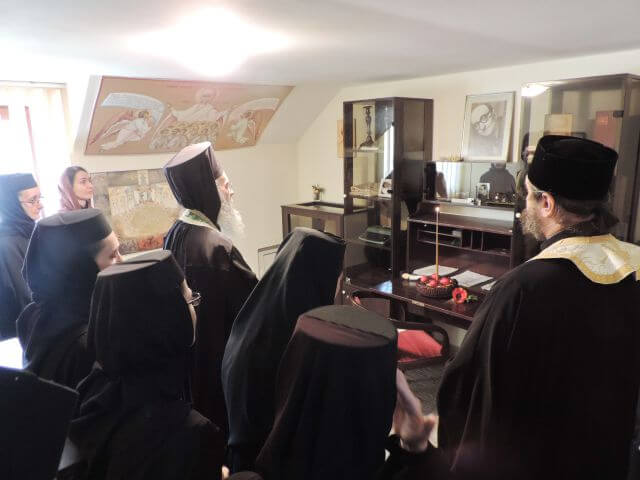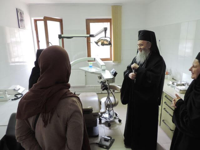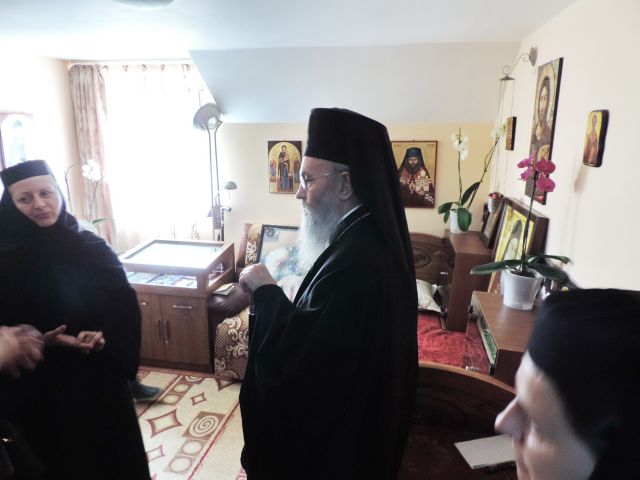 Părintele Mitropolit a binecuvântat bolnavii din azilul de bătrâne al mănăstiri noastre, mângâind și cu cuvântul sufletele încercate ale celor suferinzi, amintind totodată maicilor care se ocupă cu îngrijirea bolnavilor, cum ne putem sfinți mai ușor sufletele prin jertfa în slujirea bolnavilor, prin milă și rugăciune îndurerată pentru cei în suferință, și pentru întreaga omenire, după modelul viețuirii și rugăciunii Sf. Siluan Athonitul.