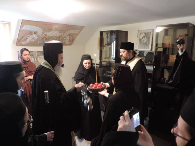 Cu binecuvântarea Părintelui nostru Mitropolit Teofan, Mitropolitul Moldovei si Bucovinei, am avut bucuria de a primi, de data aceasta și în mănăstirea noastră, sfătuirea duhovnicească a Părintelui Ierotheos, atât în probleme ce țin de lucrarea monahală a rugăciunii isihaste, cât și în probleme ce privesc viața filantropică a mănăstirii noastre dar și viețuirea în societatea secularizată de azi. Vizita Înalt Preasfinției Sale ne-a umplut inimile de bucurie și dor după dobândirea lăuntrică a Domnului nostru Iisus Hristos. Tâlcuindu-ne din Sfintele Scripturi, Înalt preasfinția Sa ne-a povățuit cum să ne curățim inimile în acest spital duhovnicesc care este Biserica, îmbărbătându-ne spre săvârșirea chirurgiei duhovnicești a inimii, unde să-L putem învia pe Domnul nostru Iisus Hristos, prin chemarea Sfântului său Nume în inimile noastre.